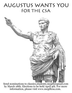 Nominations are due by midnight on March 28th. You can send them to classics.students.mcgill (at) gmail.com. Elections will be held a week later, on April 4th—stay tuned for more details, and come vote even if you aren’t running for a position!